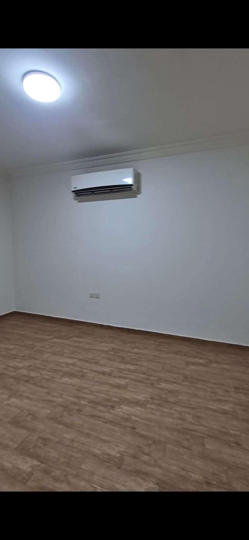 Ground floor apartment for rent in Al-Nuzha district, Riyadh. Corner building. Close to Al-Rawad International Schools. Split air conditioning. Consists of: 3 rooms, a living room, 2 bathrooms, and a large, clean yard. Independent electricity connection. Price: 50,000 SAR (two installments or one payment). No monthly rent. Security deposit: 1000 SAR. Water: 1000 SAR. Office fees: [Not specified].