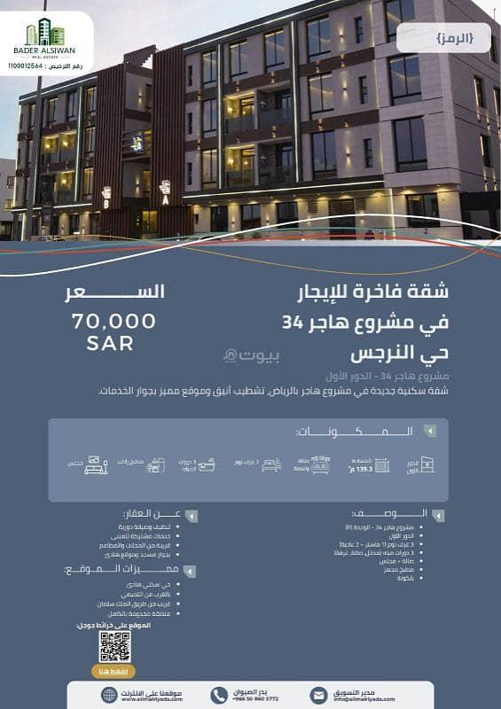 If you are looking for a comfortable and spacious living environment in Riyadh, this apartment in Al-Narjis is an excellent choice. Don't miss this opportunity, contact us today to schedule a viewing and explore all that this property has to offer.