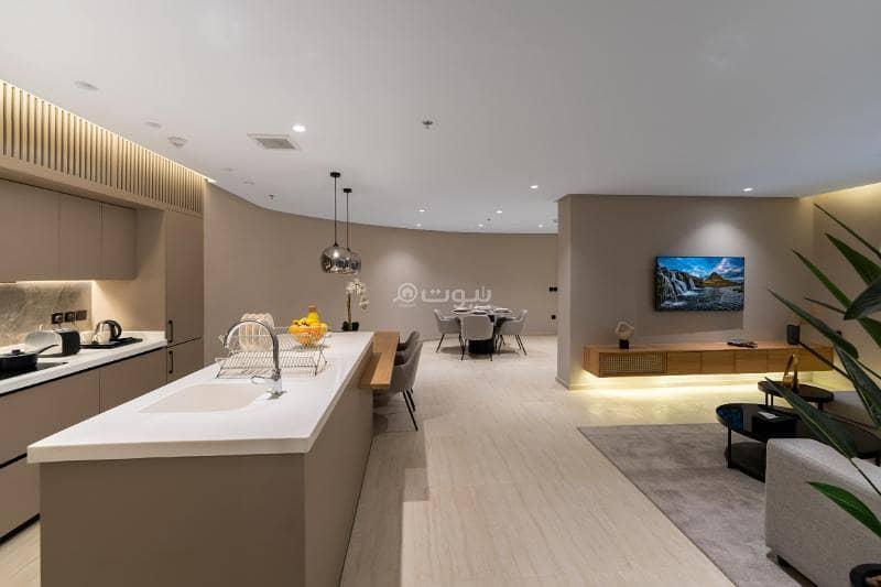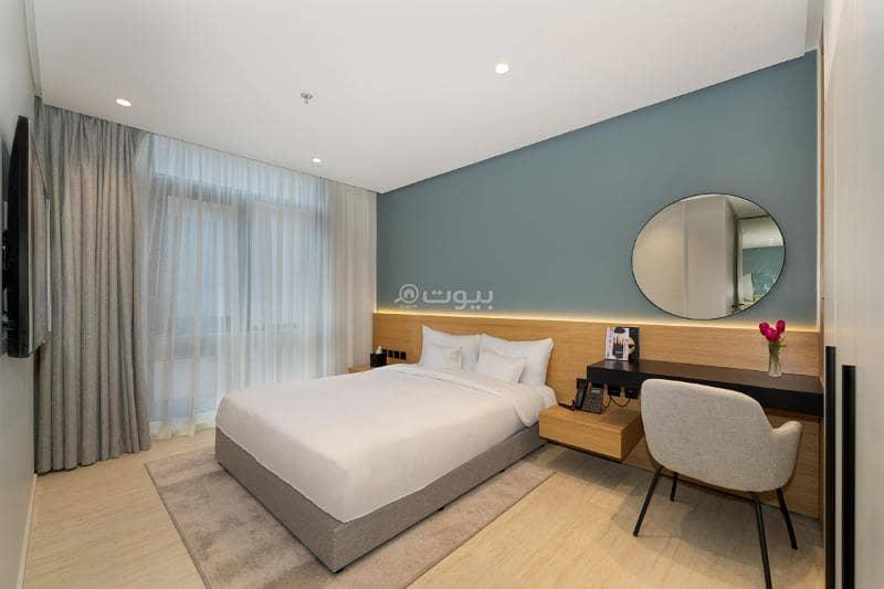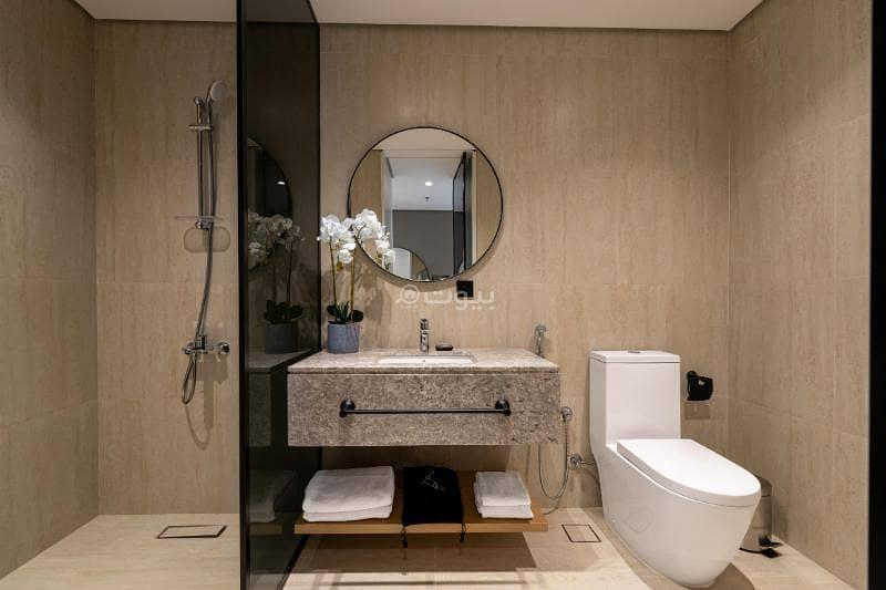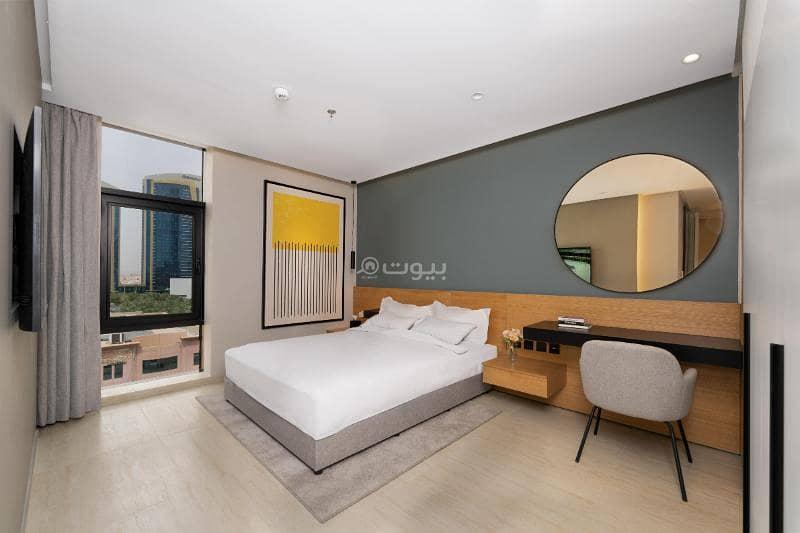 The "Arai Suites" residential complex is located in Riyadh on Al Olaya Street across from Kingdom Tower, and offers exceptional high-quality hotel services to its residents, including a 24-hour gym, an indoor pool, basement parking, security with surveillance cameras, an outdoor barbecue area, an indoor lounge, and an outdoor seating area on the rooftop. The suites are meticulously designed and offer options including a one-bedroom suite, a two-bedroom suite, and a three-bedroom suite, all equipped with world-class shared amenities that include free services: rent inclusive of electricity and water bills - access to the gym - indoor pool - weekly cleaning service - security and surveillance cameras 24/7 - maintenance service 24/7.
