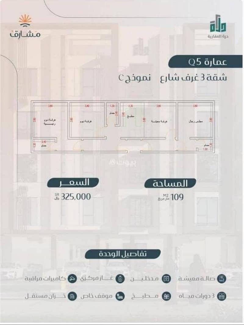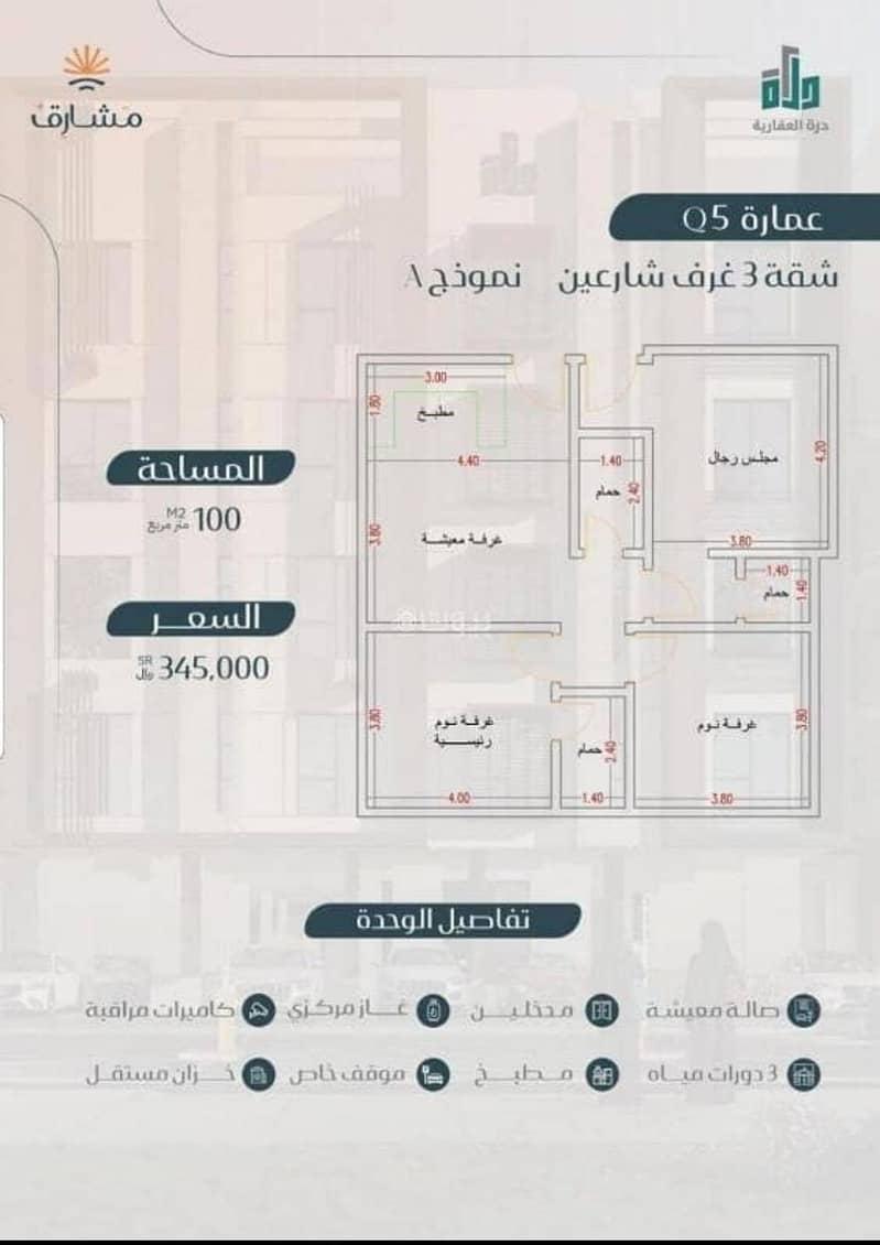 Apartment components: 3 bedrooms - living room - kitchen - 3 bathrooms