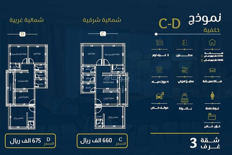 For sale, a 3-bedroom apartment in the Nahda177 project with a building area of 117 square meters. It has two entrances and consists of: 3 bedrooms, a living room, 4 bathrooms, maid's rooms, balcony. Features include: private parking, separate upper and lower tanks, split AC and central duct, central gas, two elevators, close to a park and mosque, warranty against hidden defects, owners' association for one year free of charge. Near Atelier Lavi, Al-Redsee Mall, King Abdulaziz International Airport, and the waterfront. Price: 660,000 SAR. We also have other projects in Nahda, Zahra, Rawda, Salamah, Faysaliyah, and Obhur with prime locations on main streets for commercial, administrative, and residential purposes, including studio rooms, two-bedroom, 3-5 bedroom apartments, commercial shops, and administrative offices.