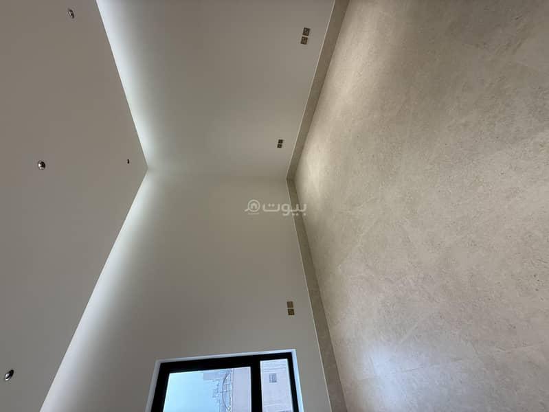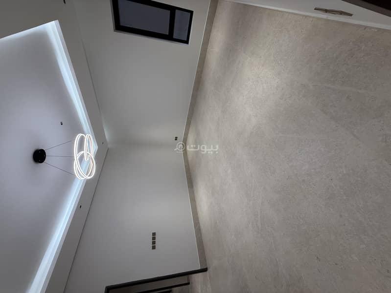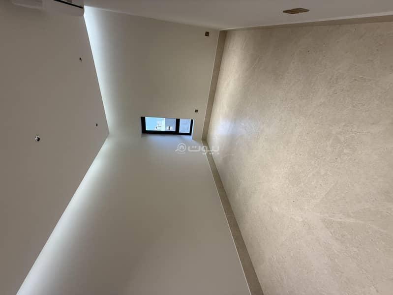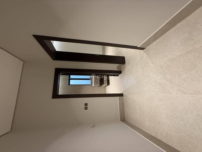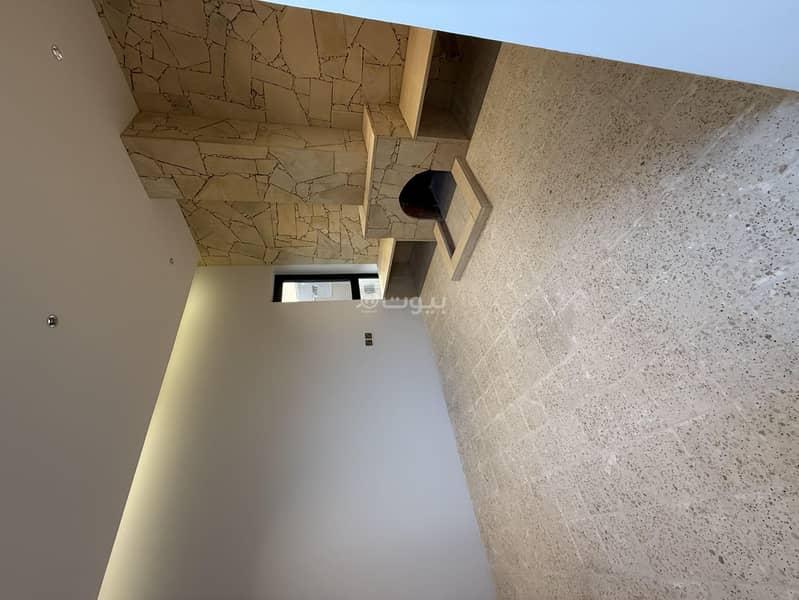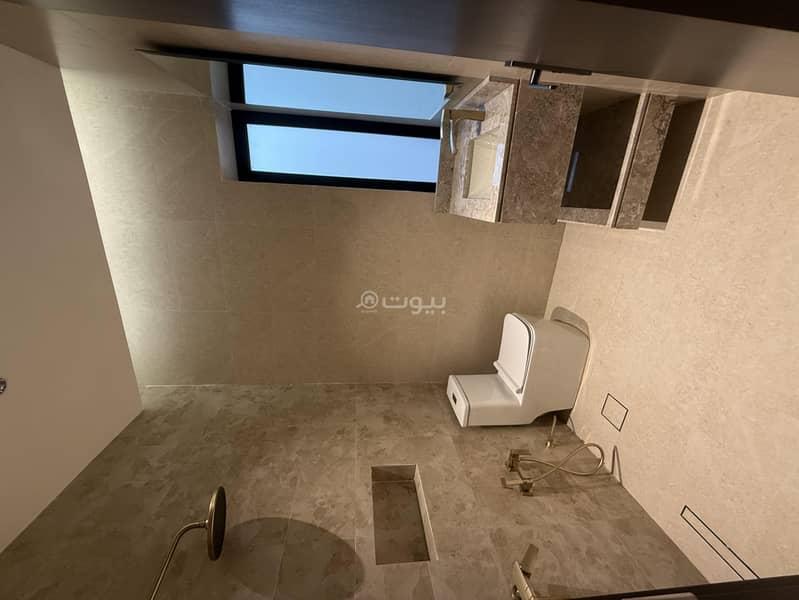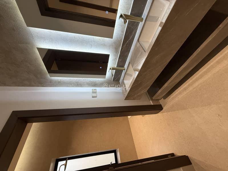 Two entrances: one for the living room with a bathroom serving it, and the other leading to the hall with a bathroom, maid’s room, and fitted kitchen.