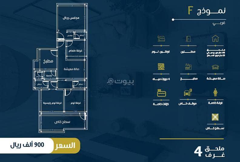 Annex 4 for sale in the Kyan Renaissance project 175 - on a facade with a building area 145 square meters 25 square meters roof Two entrances and consisting of: 4 rooms living room 4 bathrooms Maid's room Private roof The advantages: * Private parking * Near a park and mosque * Independent upper and lower tanks * Two elevators * Smart home system * Hidden defects guarantee * One year owners' association free Near the Radsy Mall Near the Jeddah Waterfront Near King Abdulaziz International Airport 900 thousand required * We also have other projects Renaissance - Azahra - Ar Rawdah - As Salama - Al Fayha - Abhur In prime locations - wide streets Commercial - Administrative - Residential Studio room Two rooms 3 - 4 - 5 rooms Commercial shops - Administrative offices