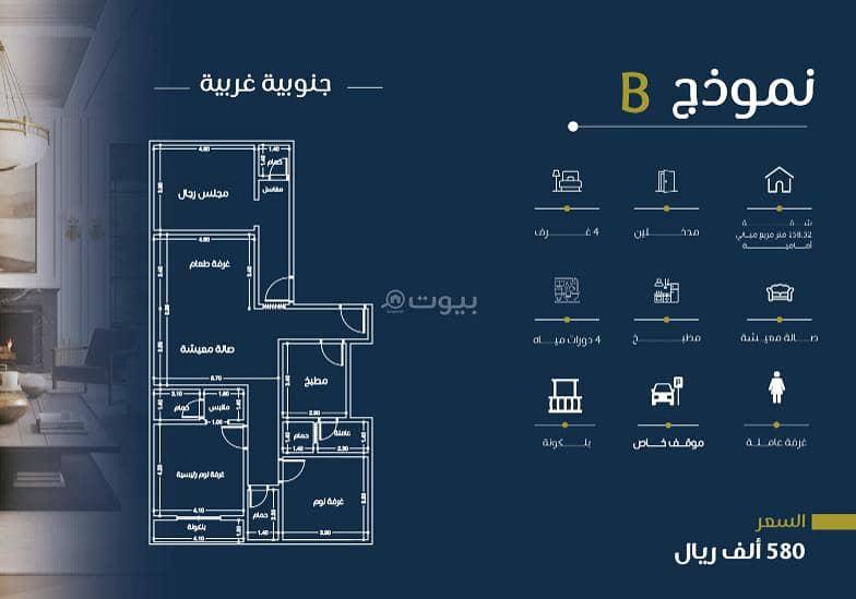 For sale 4 rooms in Kyan As-Salama project 188 - on a frontage with a building area of 158 square meters . It has two entrances and consists of: 4 bedrooms living room 4 bathrooms, maid's room Features: * Private parking * Separate upper and lower tanks * Split A/C installation + central duct * Central gas - Two elevators * Near the mosque * Hidden defects guarantee * One year owner association free * Near a park * Near men's and women's sports clubs * High royal ceilings Nearby: * near Yo-Woak * near City Yard * near King Abdulaziz International Airport * near Arab Mall. Price: 580 thousand Also, we have other projects in Al-Nahda, Az-Zahra, Ar-Rawdah, As-Salama, Al-Faysaliyyah, and Abhur with prime locations and wide streets - commercial, administrative, residential Studio room Two rooms 3 - 4 - 5 rooms Commercial shops - administrative offices