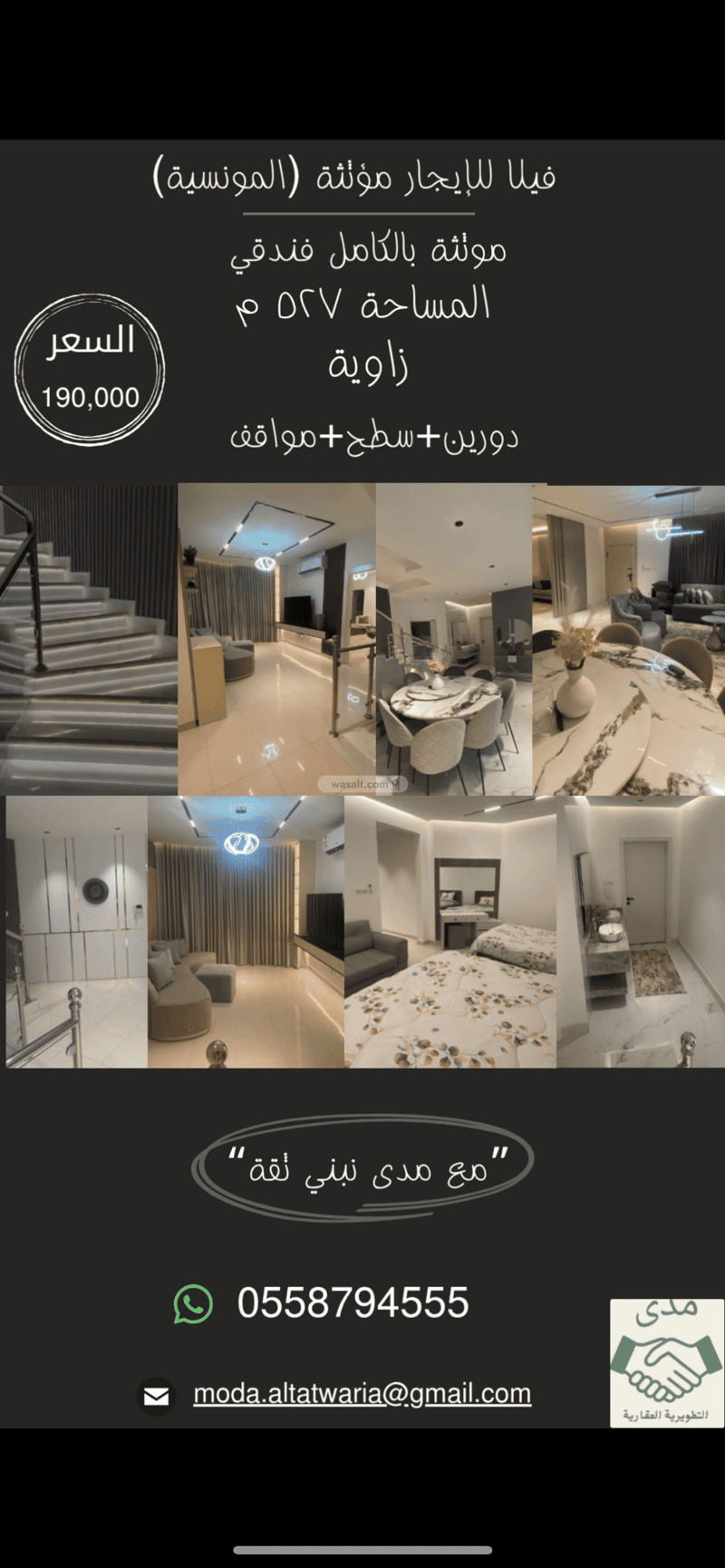 فيلا مؤثثة تأثيث فندقي فاخر، سكنت سنة ونصف فقط، تتميز بـ:
