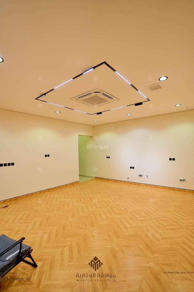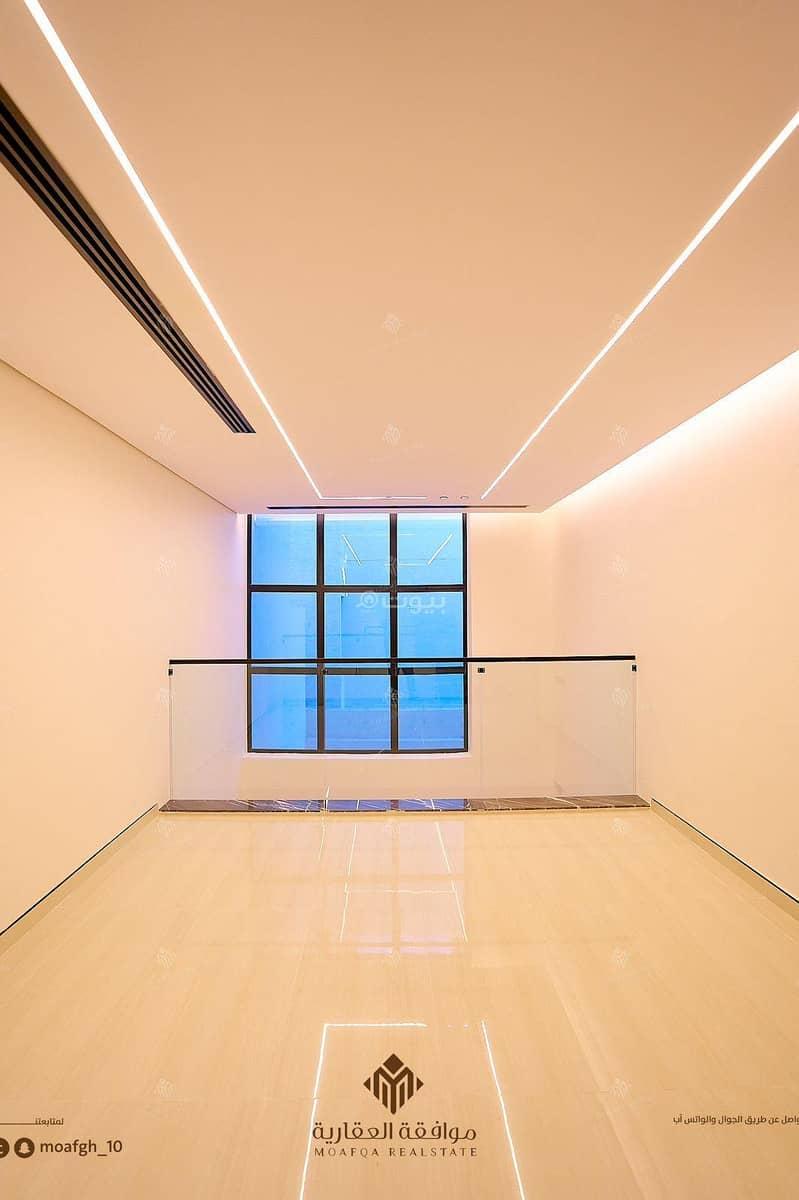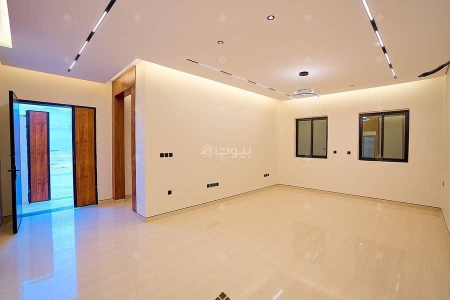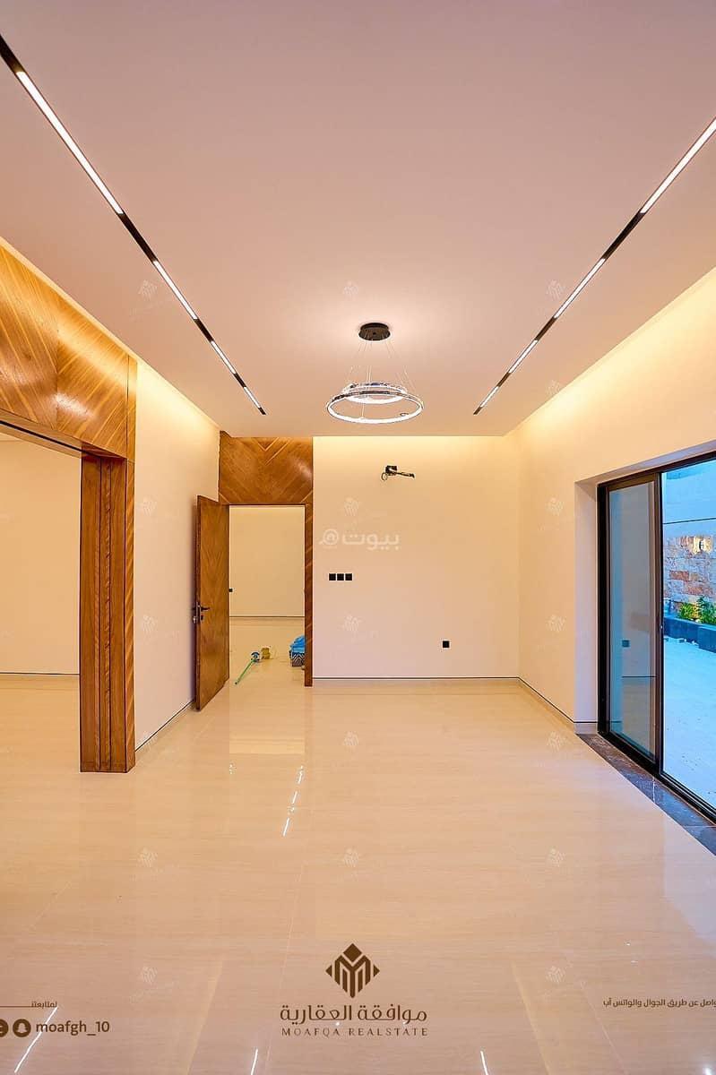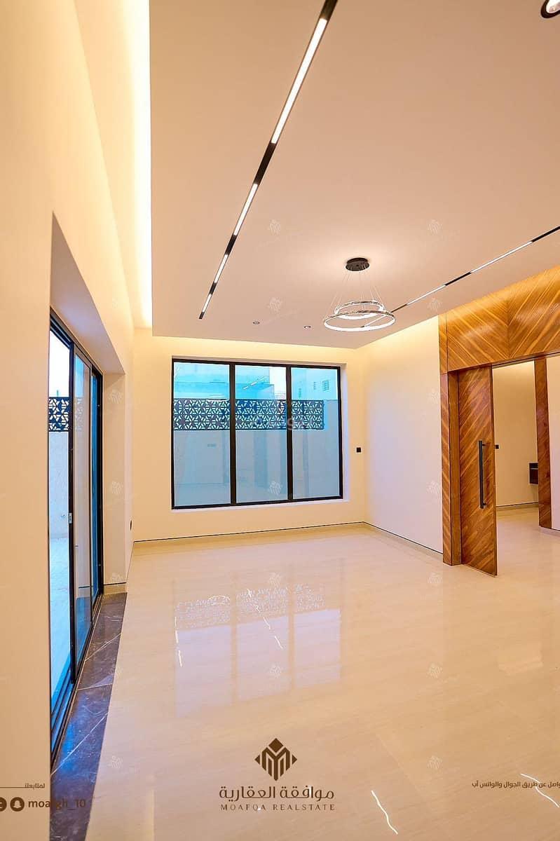 Villa 450 + with two apartments —————————————————— *Villa Details*: —————————————————— *Ground Floor*: *Spacious guest majlis + dining room + women's lounge + additional lounge + master bedroom + large kitchen with pantry + maid's room + laundry room + *First Floor*: Spacious lounge + 5 master bedrooms And double height with a view of the lounge and the outdoor patio (*Elevator provision*) + (*Two apartments with a men's majlis entrance and lounge, two bedrooms, kitchen, and 3 bathrooms*) —————————————————— *Area 450 square meters* *Located in Al-Mahdiyah neighborhood west of the capital,* *the villa area is very elevated (the highest geographically in Riyadh)* *Very sturdy personal construction, not commercial*