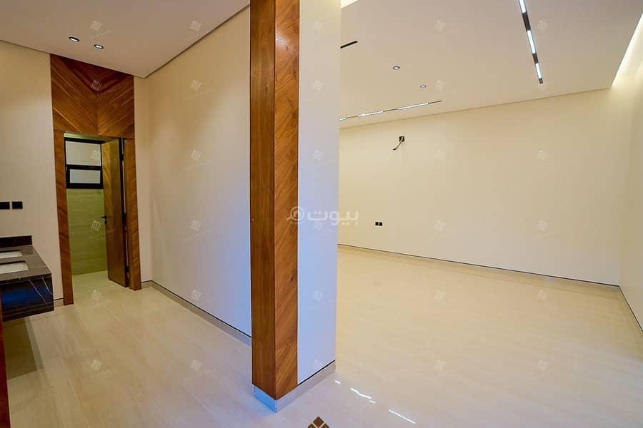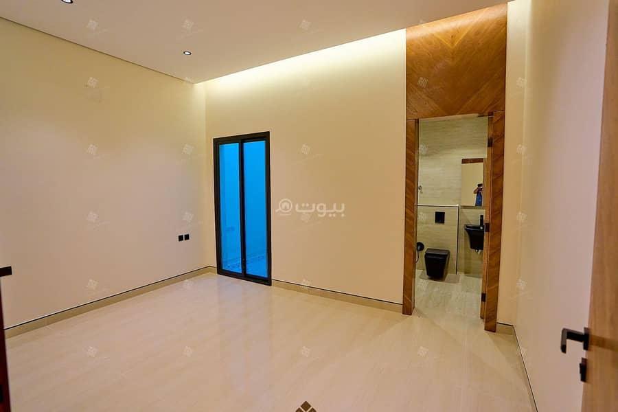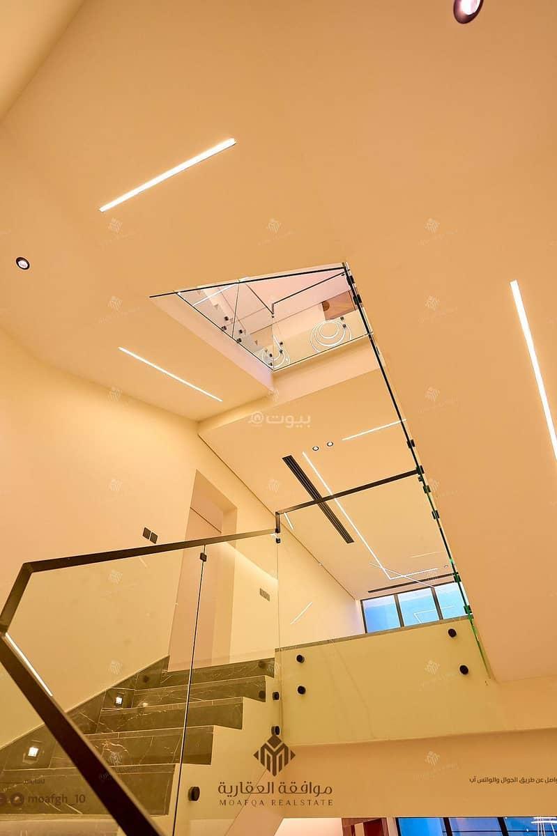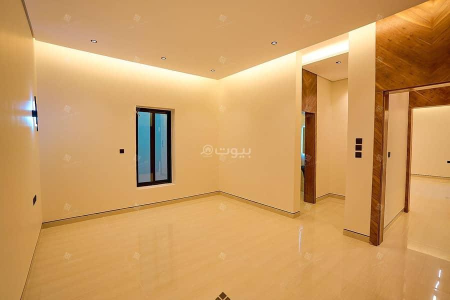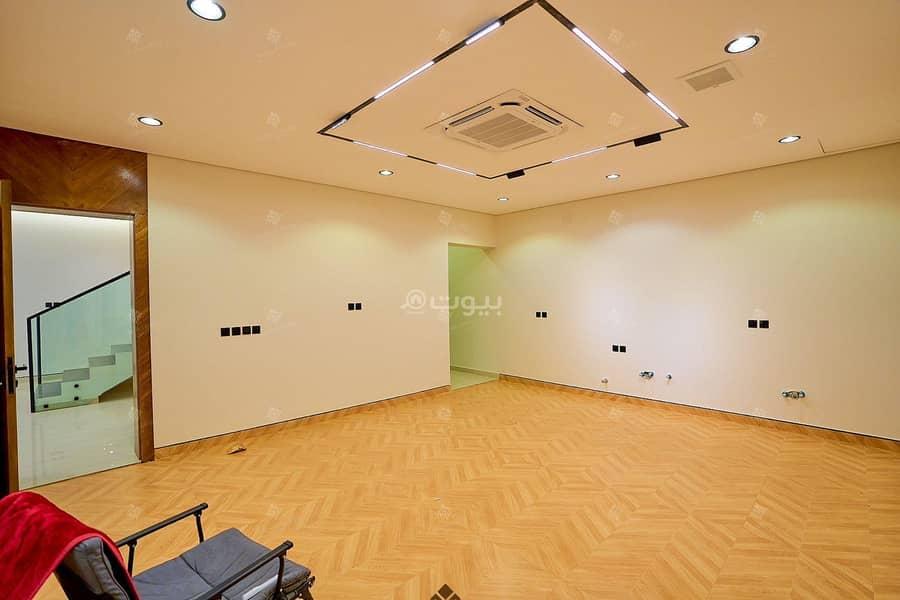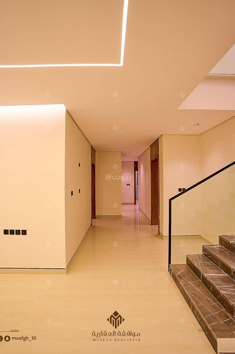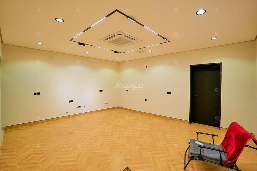 Villa 450 + with two apartments —————————————————— *Villa Details*: —————————————————— *Ground Floor*: *Spacious guest majlis + dining room + women's lounge + additional lounge + master bedroom + large kitchen with pantry + maid's room + laundry room + *First Floor*: Spacious lounge + 5 master bedrooms And double height with a view of the lounge and the outdoor patio (*Elevator provision*) + (*Two apartments with a men's majlis entrance and lounge, two bedrooms, kitchen, and 3 bathrooms*) —————————————————— *Area 450 square meters* *Located in Al-Mahdiyah neighborhood west of the capital,* *the villa area is very elevated (the highest geographically in Riyadh)* *Very sturdy personal construction, not commercial*