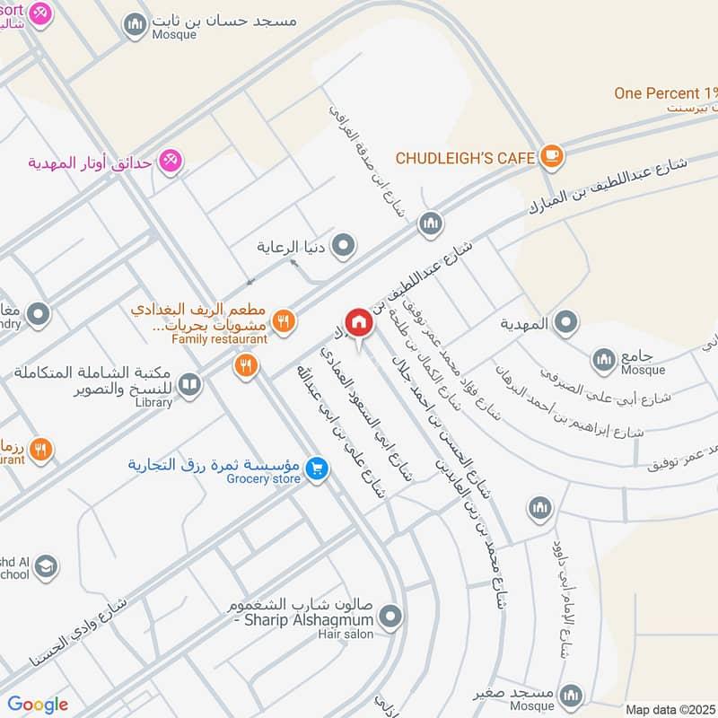 Ground floor: men's entrance and women's entrance - garage - side courtyard - men's living room - dining hall - spacious hall - kitchen - central air conditioning