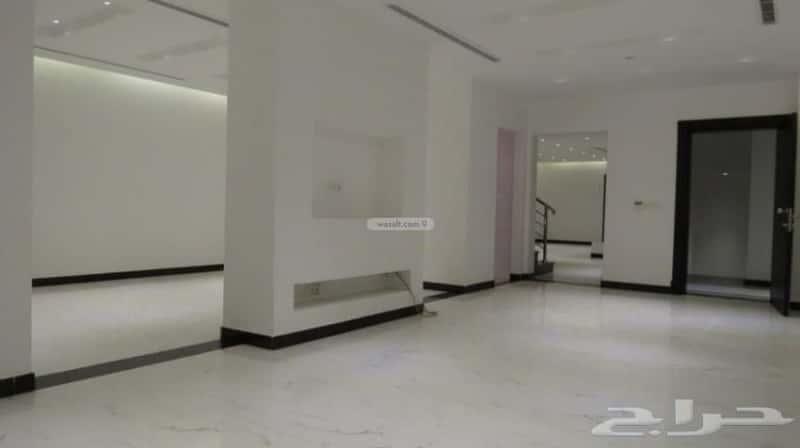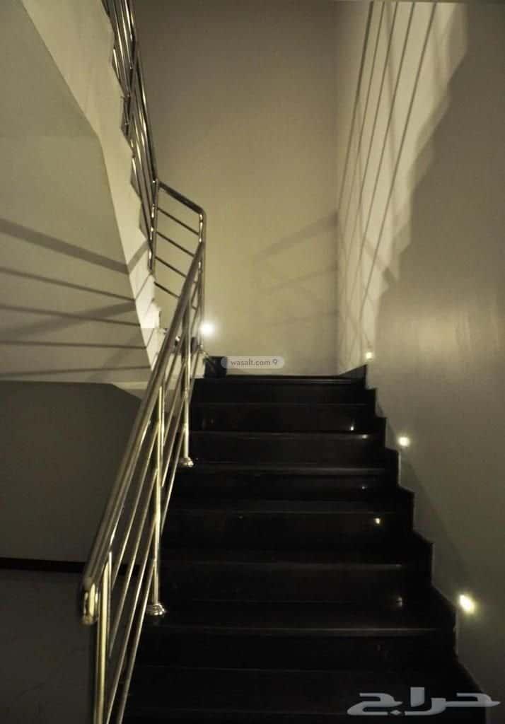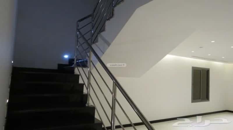 الدور الاول عدد ٢ صوالين وغرفه معيشه وحمام ضيوف وحمام ودرج داخلي سلم دربزين ستالس أستيل درج رخام اسود ونظام سماعات في السقوف