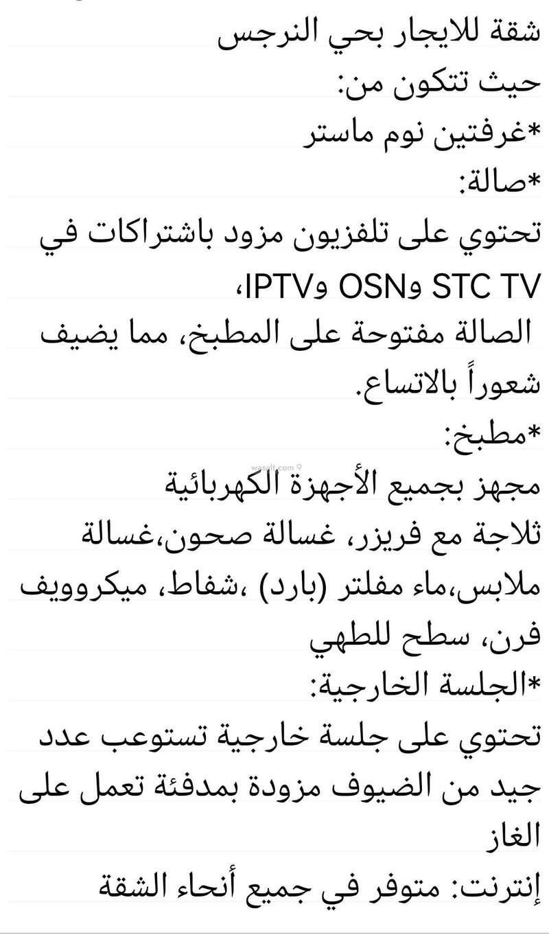 شقة للايجار السنوي _النرجس