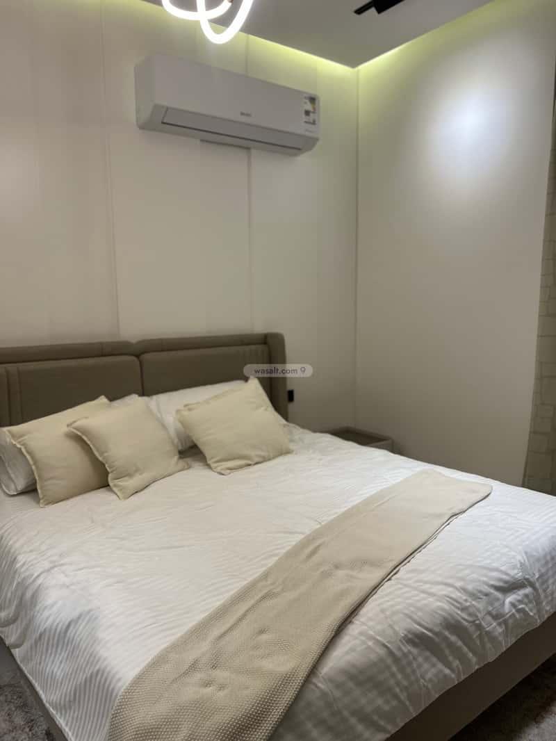 3 غرف نوم أنيقة، إحداها ماستر روم مع حمام داخلي، جميعها مفروشة بأسرّة فاخرة ودولايب ملابس، ويزين الجدران ديكور خشبي يضفي لمسة فنية مميزة