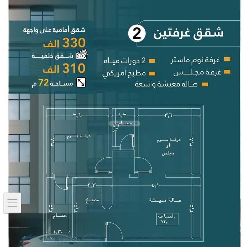 مساحات متنوعة ،وشقق بعدد غرف مختلفة ( 2 - 3 - 4 )