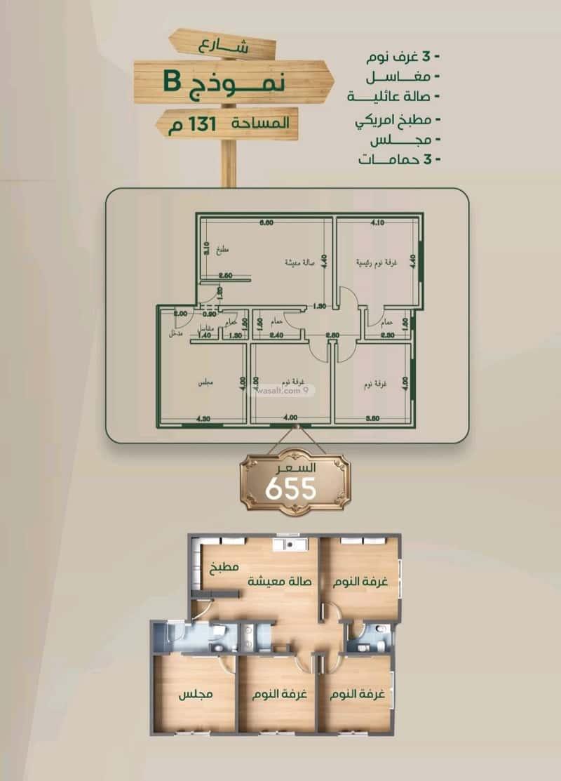 ٤ غرف | ١٣١م٢ | ٦٥٥ الف
