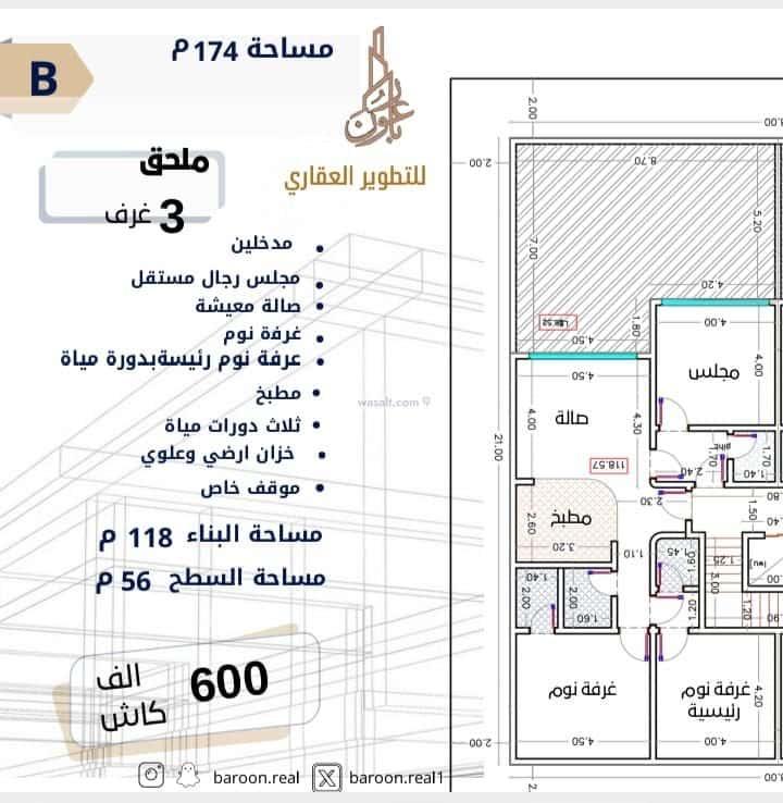 ملحق 3 غرف وصاله وثلاث دورات مياه
