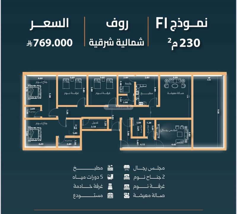 ملحق 5غرف أمامي مدخلين مساحة 230 م السعر 769 الف