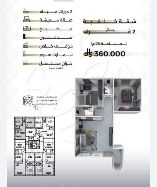 • غرفتين | 76م² | 360,000 ريال