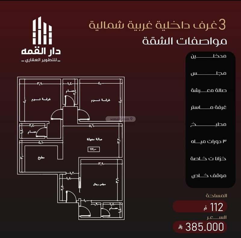 3غرف خلفيه مساحه 112م بسعر 385الف