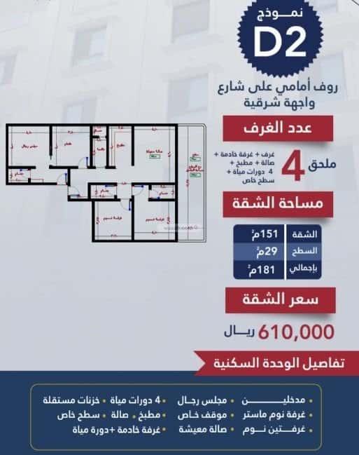 ملحق 4غرف مساحة 101م بسعر 610 الف