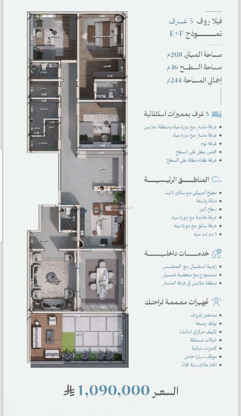 كما يتوفر ملاحق من خمس غرف بمساحة 244م