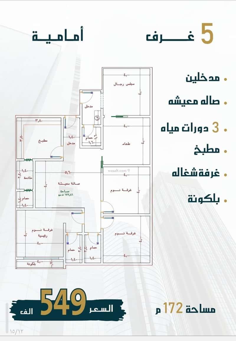 ٥غرف اماميه ببلكونه مساحه ١٧٢م بسعر ٥٤٩الف
