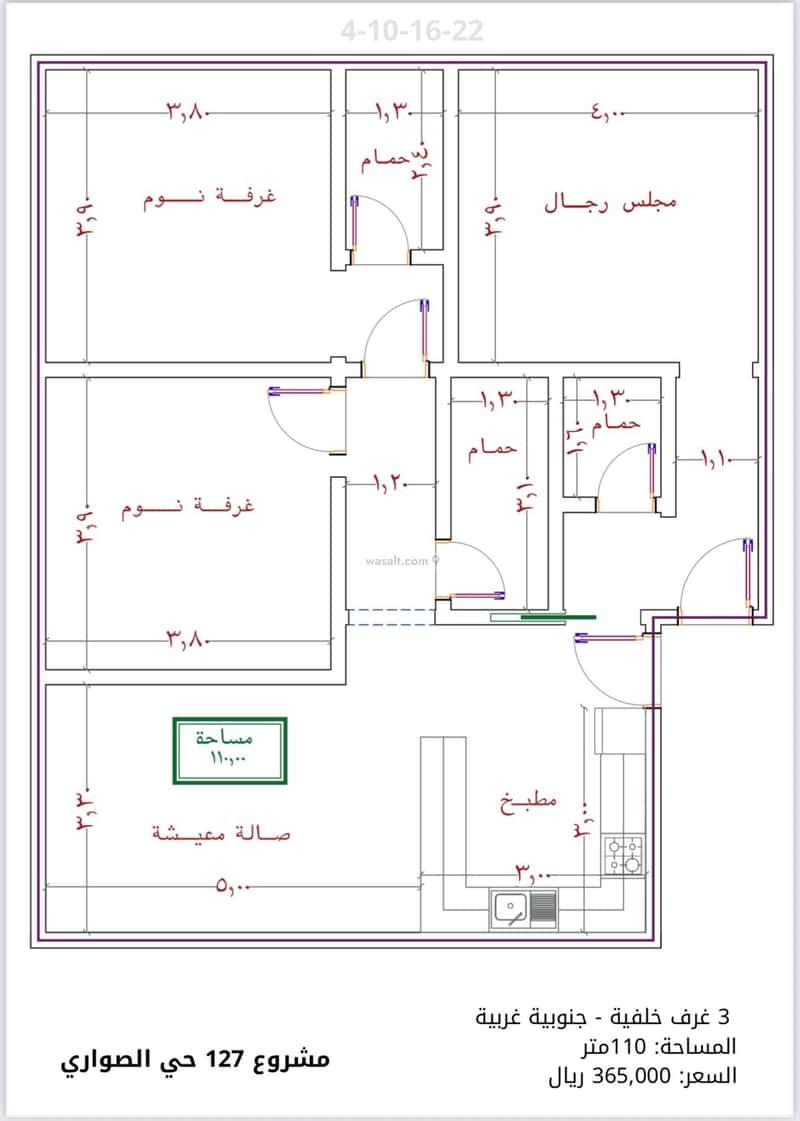 4غرف مدخلين3دورات مياه غرفة خادمة غرفة ملابس غرفةسائق المساحه 195م السعر 550الف