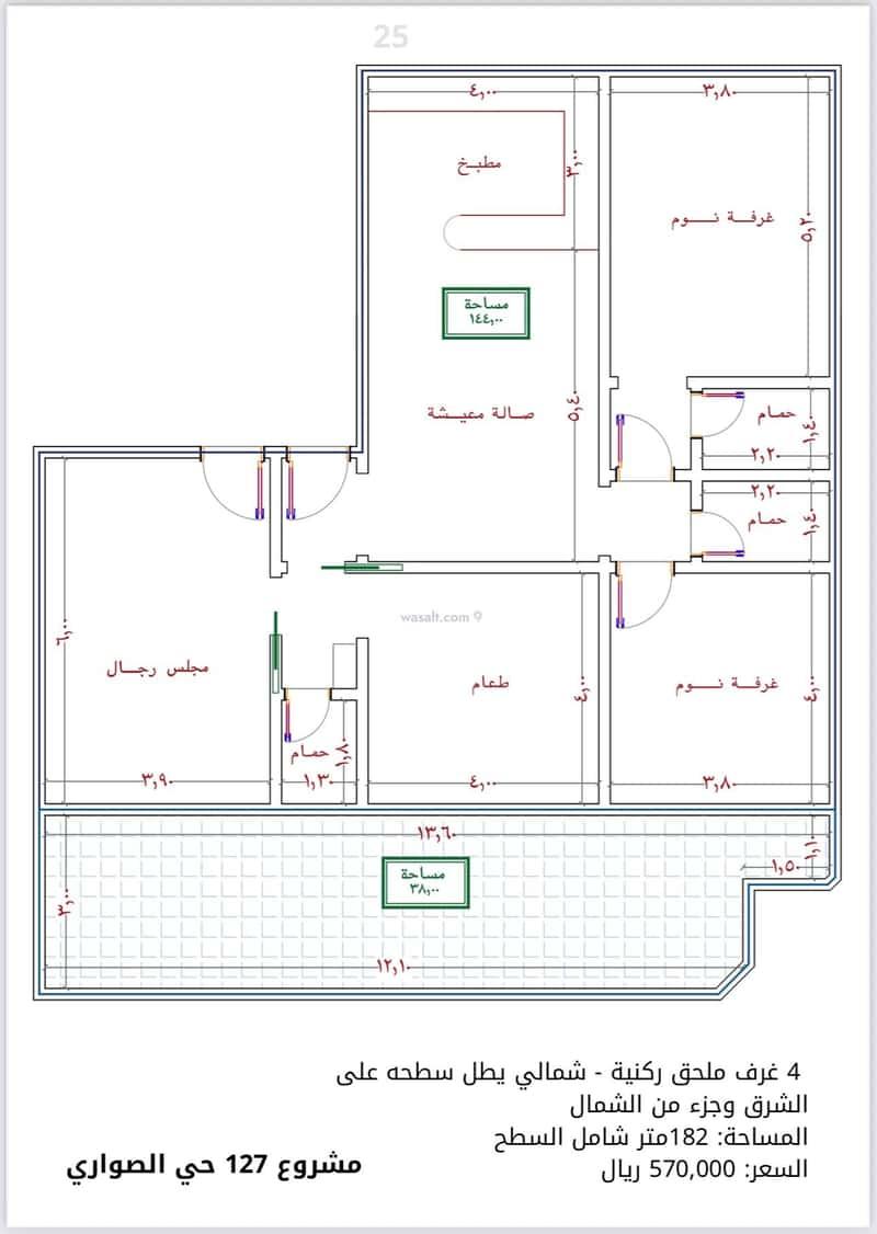 5غرف مدخلين 4دورات مياه غرفة خادمة غرفة ملابس غرفة سائق المساحه 222م السعر 630الف