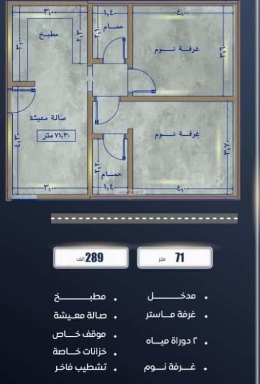* 2 غرف أمامية مساحة 71م السعر 289 الف