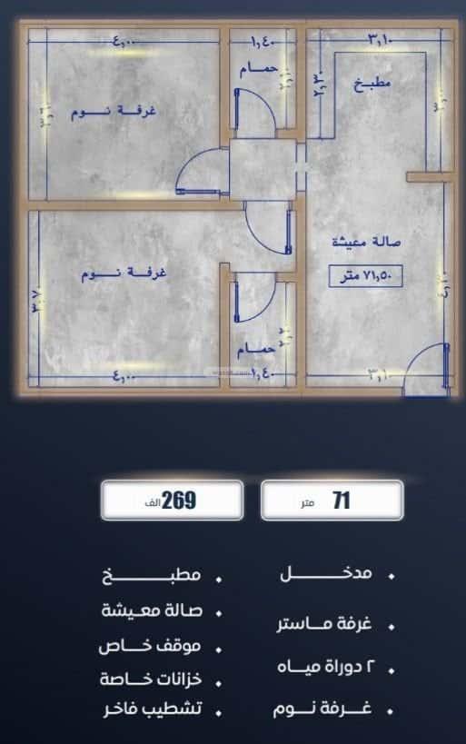 * 2 غرف خلفية مساحة 71م بسعر 269 الف