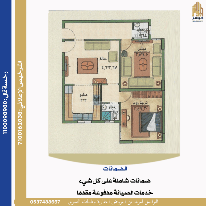 مساحة الشقة : ٧٩،٥٦ م تقريبًا