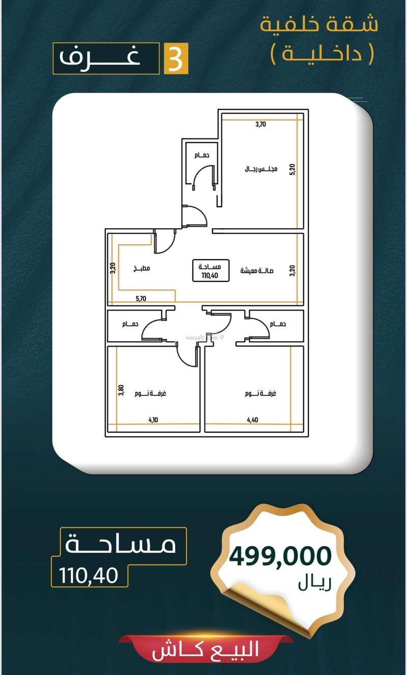 *🏠شقة خلفية داخلية (3 غرف): المساحة: 110م*