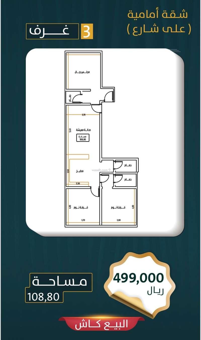 *🏠 شقة أمامية على شارع (3 غرف): المساحة: 109م*