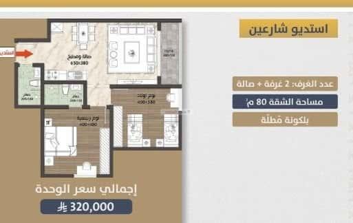 غرفتين مع بلكونه  استديو مساحة 82م بسعر 310 الف