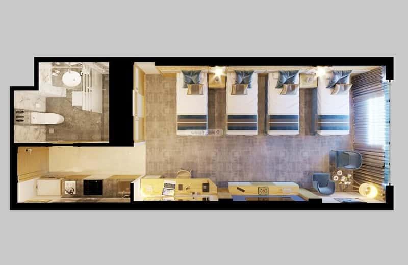 مساحه ٤٧ متر دور عاشر غرفة نوم وحمام ومطبخ صغير