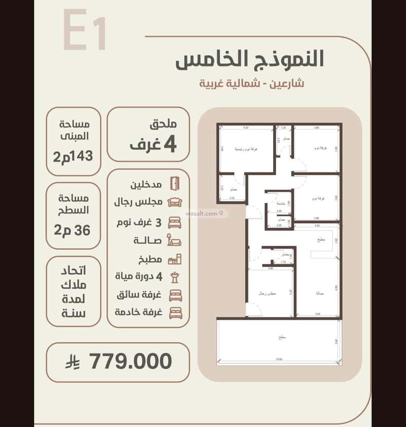 مساحة المباني 143م - مساحة السطح 36م