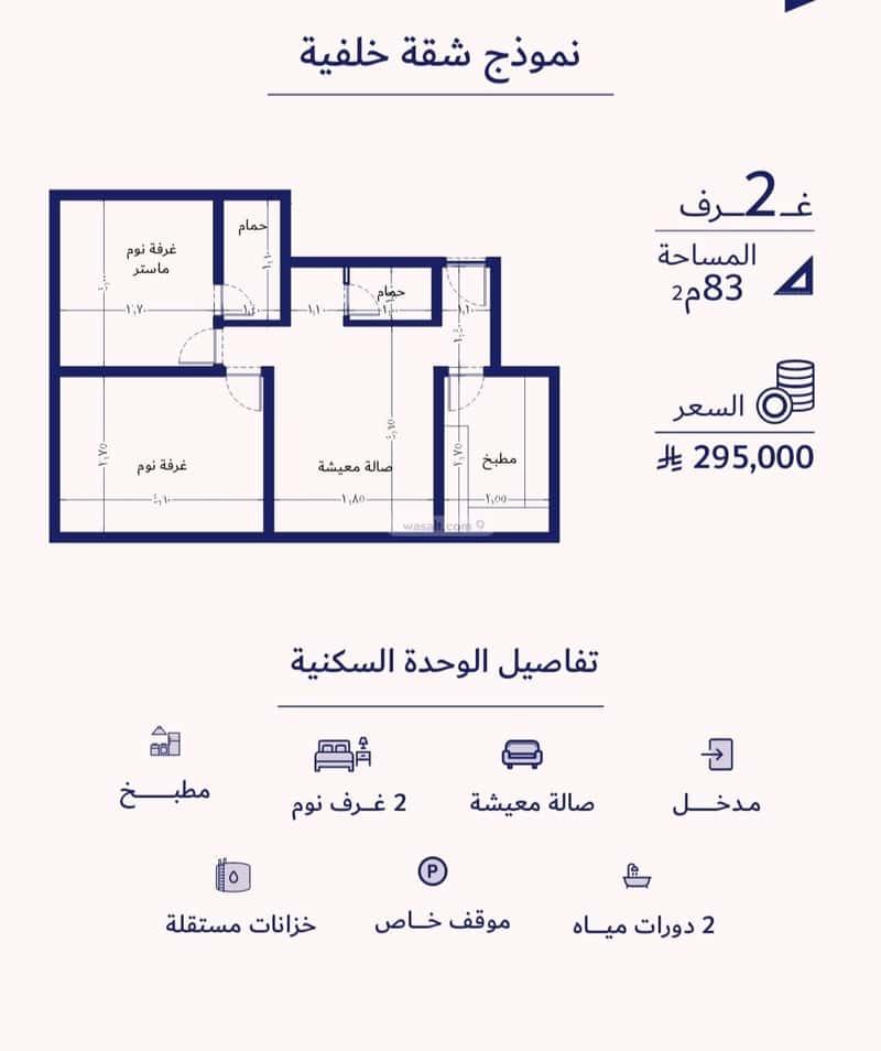 - غرفتين خلفيه مساحة 83 م2 بسعر 295 الف