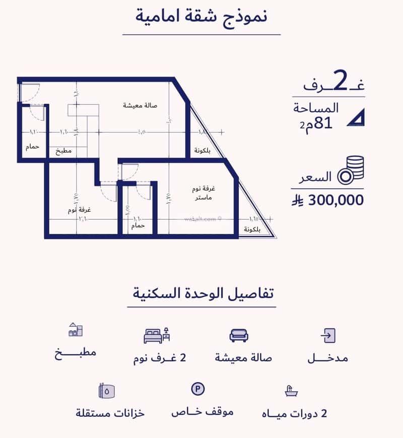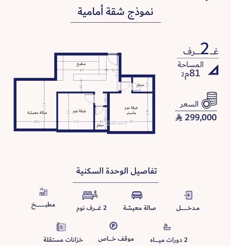 - غرفتين اماميه مساحة 81م2 بسعر 299 الف