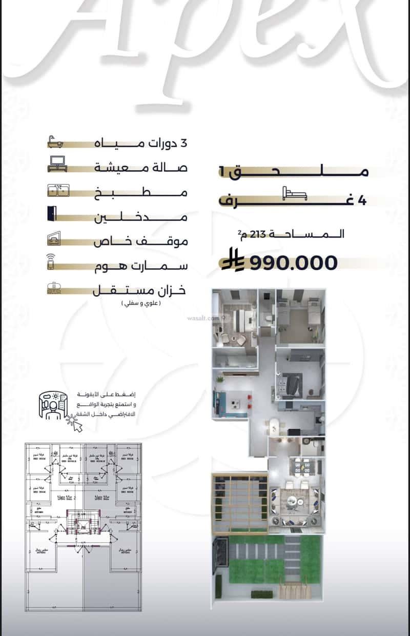 • ملحق فاخر 5-4 غرف | 213م² | 990,000 ريال