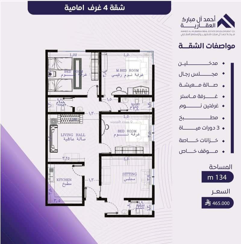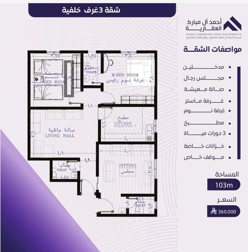 🔸  ث  غرف نوم + 4 دورات مياه + صالة واسعة + مطبخ+ مدخلين.