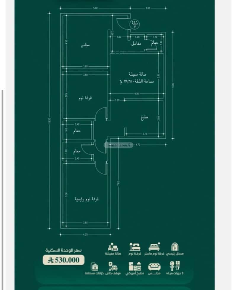 مساحه ١١٩م السعر ٥٣٠ الف كاش
