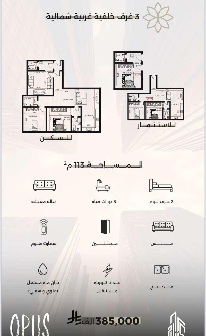 ▪️ شقة 3 غرف (خلفية) – 113م²