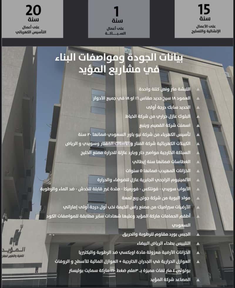 وغرفة خادمه وغرفة سائق ،، وموقف خاص بجميع الضمانات المعروفه من المؤيد وكاميرات مراقبه للعمارة كاملة مع خدمة اتحاد الملاك ،،