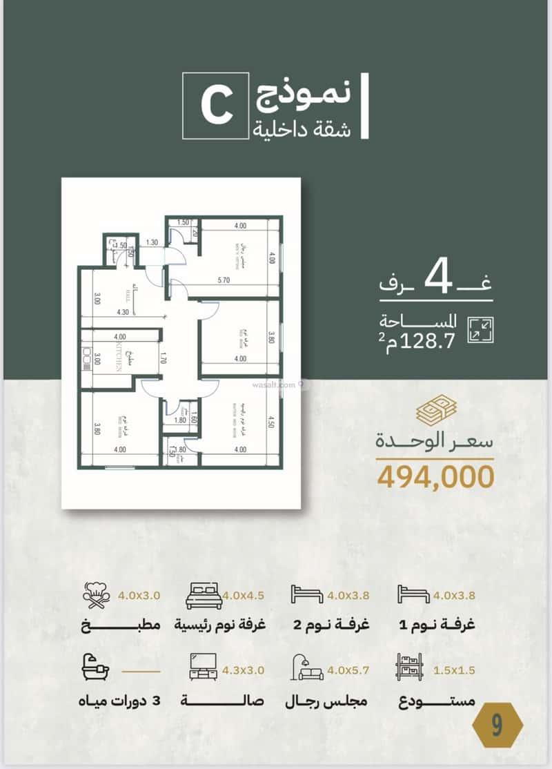 يتكوّن المشروع من ٣ وحدات في الدور: