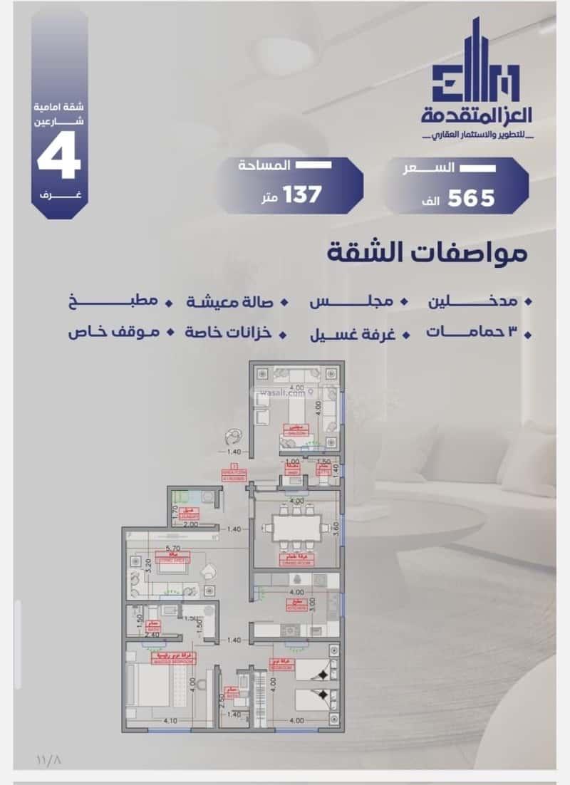 *3️⃣شقة 4  غرف اماميه شارعين*