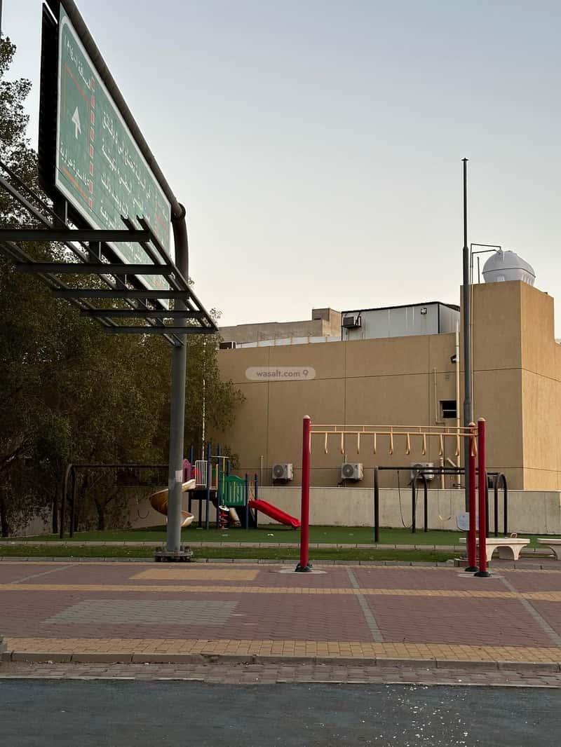 🔹امامها مسجد و مطلة بباب خلفي للعمارة على حديقة كبيرة .
