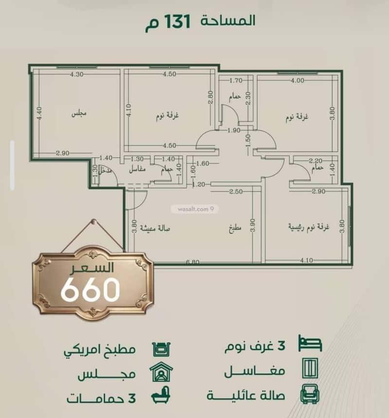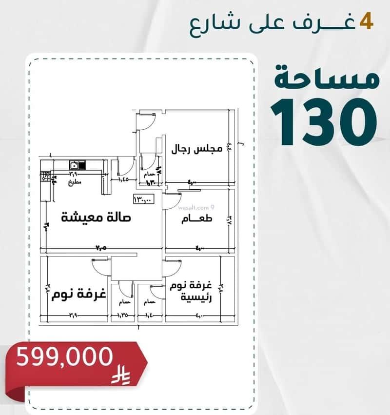 ٤غرف إماميه ركنيه شارعين ١٣٢م بسعر ٦٥٩الف