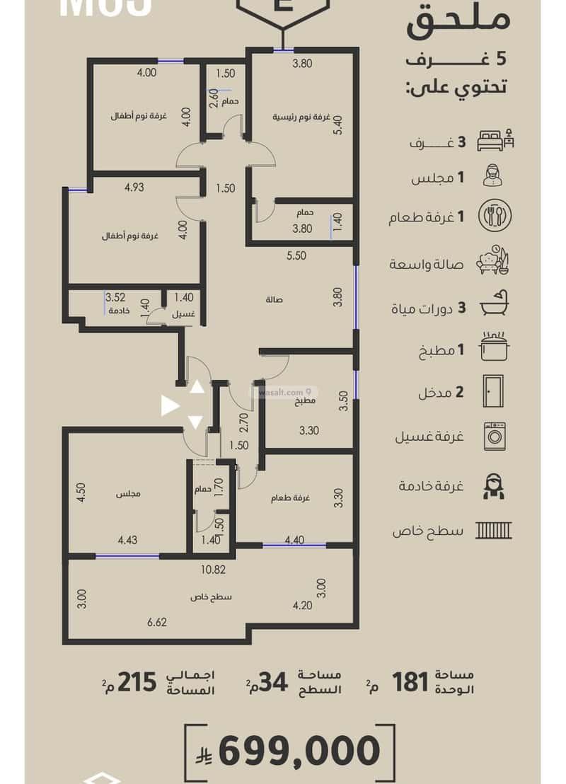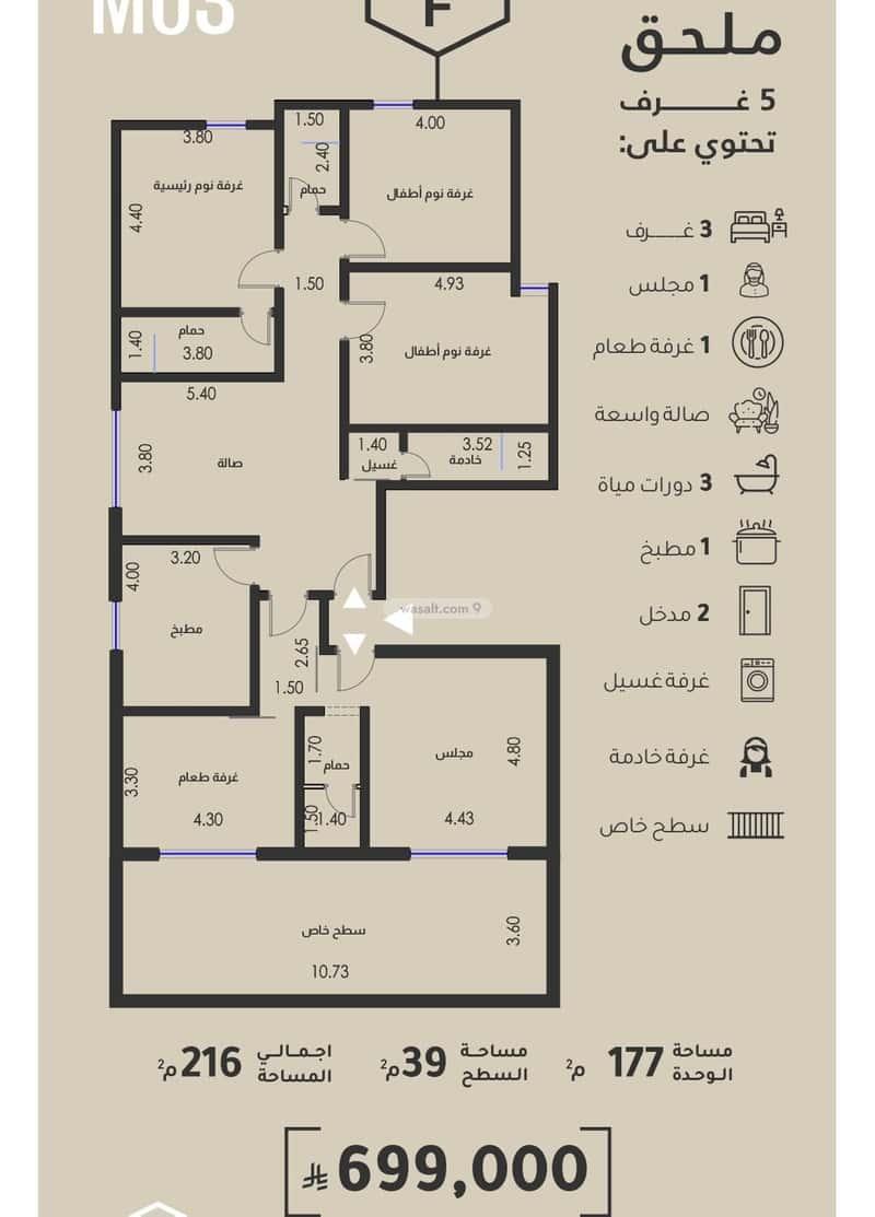 *يتكون المشروع ثلاث غرف بمساحات مختلفة وملحقين مكونة من 5 غرف