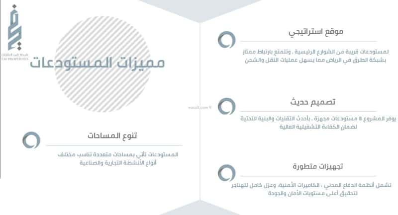 نوفر لك مستودع صناعي متكامل بمساحة 2296.5 متر مربع، مصنّف "عالي الخطورة" من الدفاع المدني، ومجهّز بجميع أنظمة الحماية والخدمات الأساسية، بسعر منافس 220 ريال للمتر الواحد.