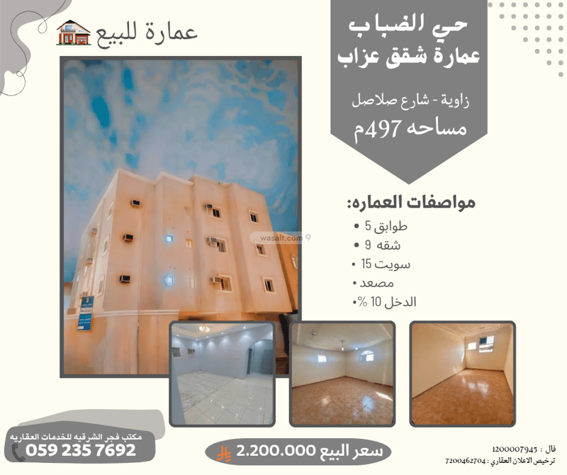 جنوبية شرقية٬ بعرض 15 م وشارع بعرض 20 م