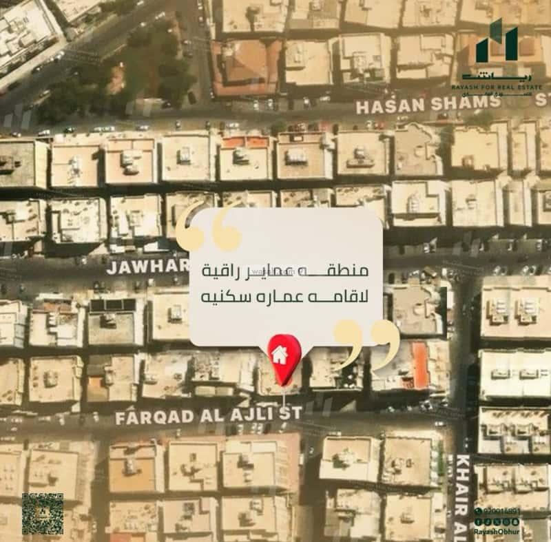 ▪️ منطقة عماير راقية لإقامة عمارة سكنية بموقع مثالي قريب من الكورنيش، المستشفيات، والأسواق الرئيسية.