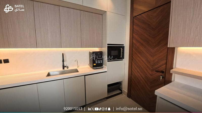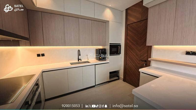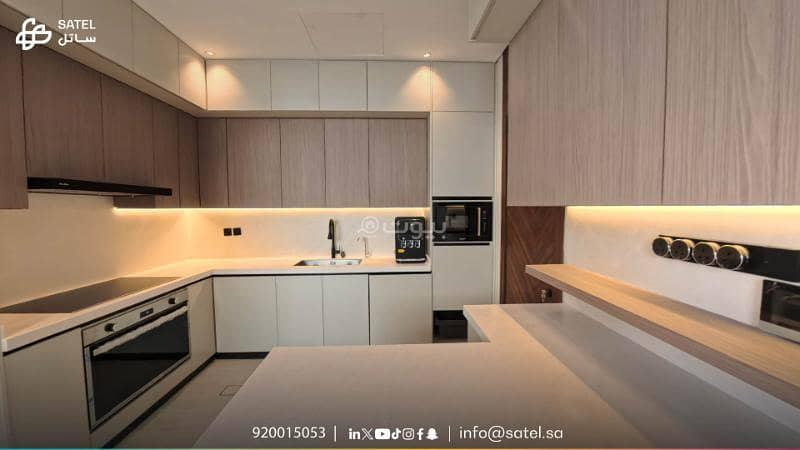Designed with modern architecture and spacious layouts - 4 Bedrooms (1 Master) - 4 Bathrooms - 1 Spacious Living Room - 1 Fully Installed Kitchen - 1 Equipped Laundry Room - 1 Maids Room - 2 Balconies Apartment Features: - Fully installed kitchen - Elevator - Split & Central Air Conditioners - First tenant - Smart home control system - Sunlit, healthy home with natural light in all rooms - Gypsum ceilings with hidden lighting - Sound-insulated windows Property Features and Amenities: - Elevator - Private parking - 24/7 CCTV - Close to schools & essential services One payment: SAR 150,000 | Two payment: SAR 155,000